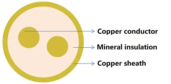 Mineralisolerede kabler er sammensat af en kobberleder, magnesiumoxid pulver mineralisolering og kobberkappe. Når kabler bruges på fabrikker, hvor kobber er ætsende, kan der tilføjes et yderste lag af polyvinylchlorid (PVC). I bygninger eller underjordiske steder, hvor æstetik eller let tilgængelighed er vigtigt for kablet, kan der tilføjes en halogenfri, røgfattig ydre kappe.